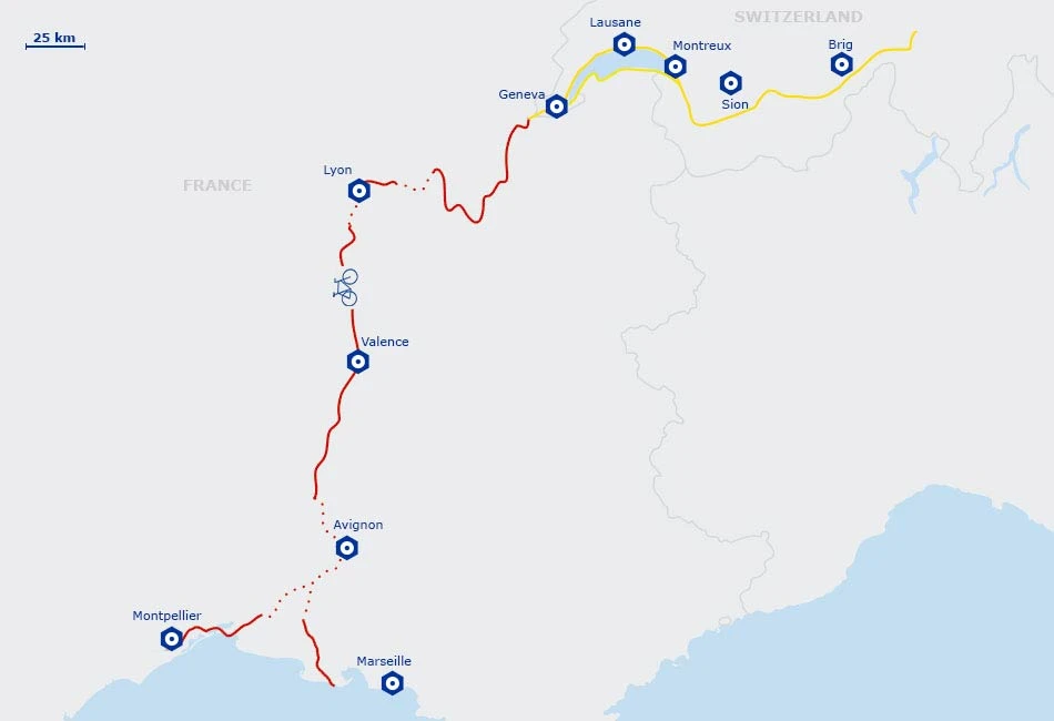 - The Scandibérique / EuroVelo 3 : It joins the ViaRhôna near Lyon: a great opportunity to combine several routes.