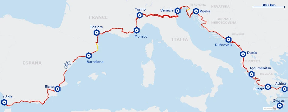 EuroVelo 8, also known as EV8 The Mediterranean by Bike, is a spectacular European cycle route that connects Cadiz in Spain to Cyprus, crossing no fewer than 10 countries :