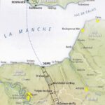 You cross the cities of Paris, Saint-Denis, La Roche-Guyon, Conflans Ste Honorine, Pontoise, Bray-et-Lû, Gisors, Saint-Germer-de-Fly, Forges-les-Euax, Neufchatel-en- Bray, Saint-Vaast, Dieppe, Newhaven, Heathfiled, East Grinstead, Rechill and London.
